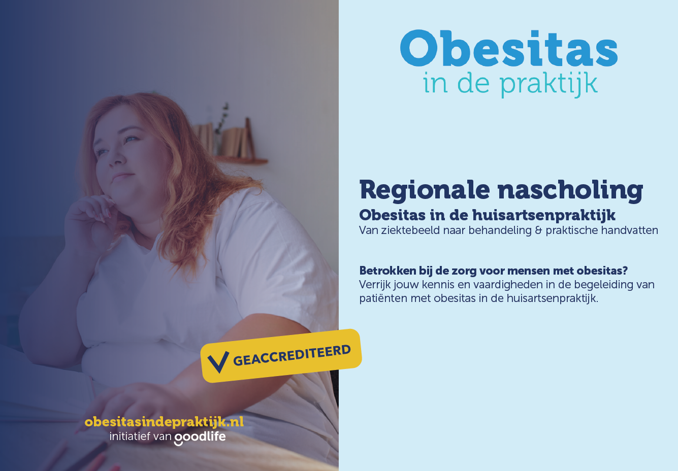 Verrijk je kennis en vergroot je effectiviteit in de begeleiding van patiënten met obesitas in de huisartsenpraktijk. Sluit aan bij collega’s in jouw regio en krijg praktische handvatten die direct toepasbaar zijn.